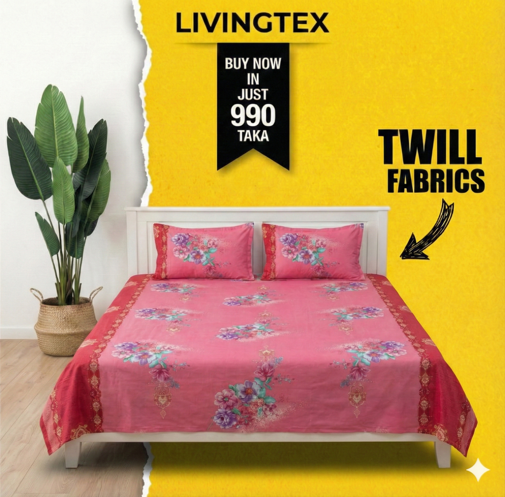 A Daily King Size Cottonย Bed Coverย from Livingtex That Never Goes Out of trend.ย  The Mixture of trendy concepts comes with a Reasonableย Bed Sheet Price in Bangladesh.ย Theย Bedsheet Designย and Hometex Texture coordinately match the pillow with a bedsheetย to suit your bedroom.