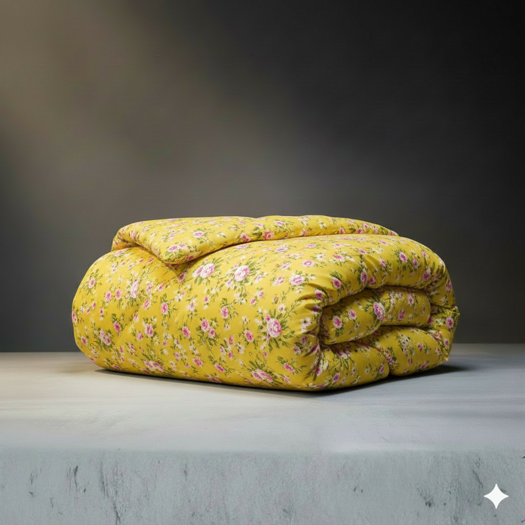 A cozy, breathable comforter designed for year-round comfort. The outer shell is pure cotton for a soft, skin-friendly feel, while the inside poly filler adds lightweight warmth without bulk.