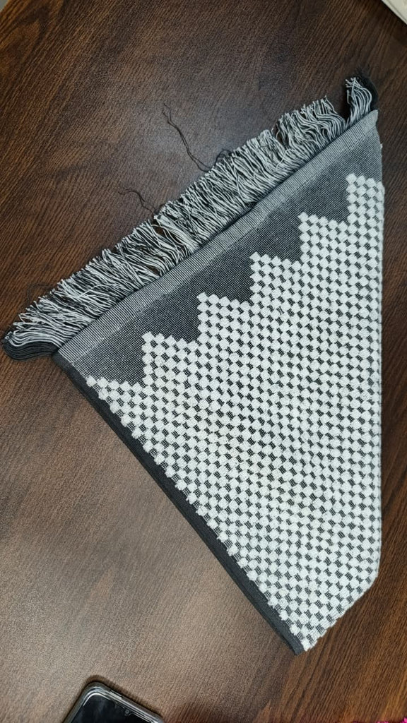 Short Description: সাদা ও ধূসর রঙের পিক্সেল বা চেকার্ড ডিজাইনের এই হ্যান্ড টাওয়েলটি বেশ আধুনিক এবং এর নিচের অংশের ফ্রিঞ্জ (Fringes) বা সুতোর কাজ একে আরও স্টাইলিশ করে তুলেছে।
